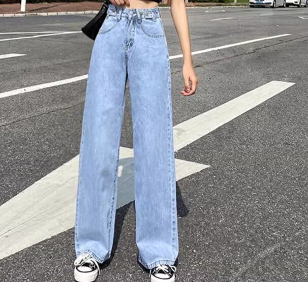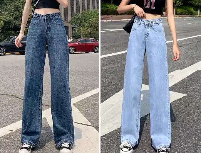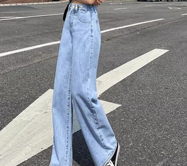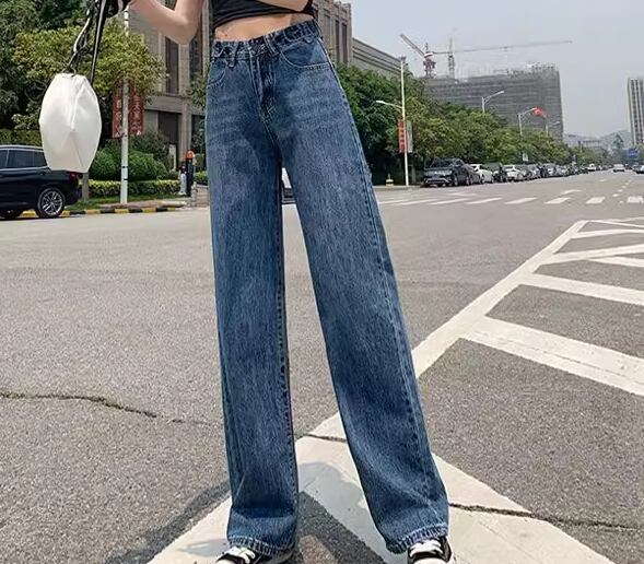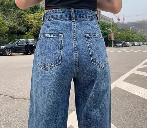 レディース パンツ ボトムス デニム ジーンズ Gパン フルレングス ワイド ストレート ポケット ハイウエスト ブルーデニム 薄手 かわいい シンプル カジュアル おしゃれ かっこいい レトロ こなれ感 ラフ ボーイッシュ ルーズ クール ラグジュアリー 夏 デート お出かけ 体型カバー 脚長 普段使い 着回し XS S M L XL 小さいサイズ 大きいサイズ ゆったり ネイビー ライトブルー