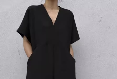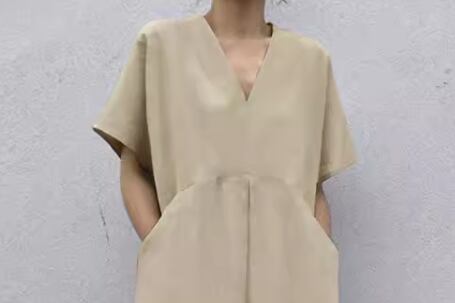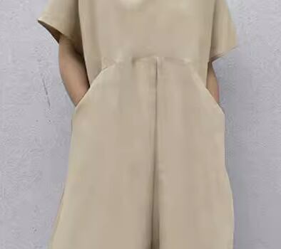 上品で落ち着いた色味とゆったりシルエットが魅力的な大人可愛い印象の半袖ロングワンピース。