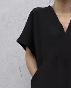 レディース ワンピース プルオーバー ロング マキシ 半袖 Vネック Aライン ウエストマーク ポケット ハイウエスト リネン 大人可愛い シンプル カジュアル レトロ ラフ ルーズ ナチュラル リラックス シック 優しい 穏やか 無地 夏 デート お出かけ 体型カバー 普段使い S M L XL 大きいサイズ ゆったり ブラック アプリコット 大人カラー 大人デザイン