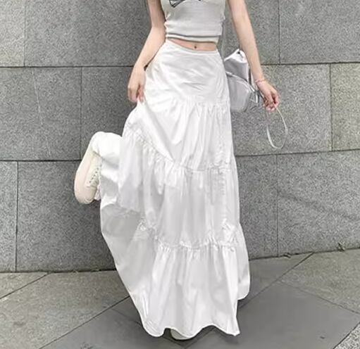 レディース スカート ロングスカート ロング マキシ Aライン ティアード フェミニン ハイウエスト かわいい 大人可愛い シンプル カジュアル おしゃれ レトロ ガーリー キュート ナチュラル 清潔感 爽やか シック 高級感 優しい 穏やか フェアリー 無地 春 秋 デート お出かけ 普段使い 着回し S M ホワイト