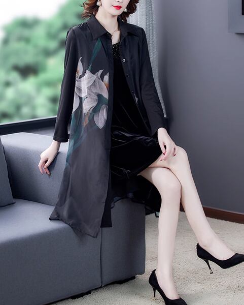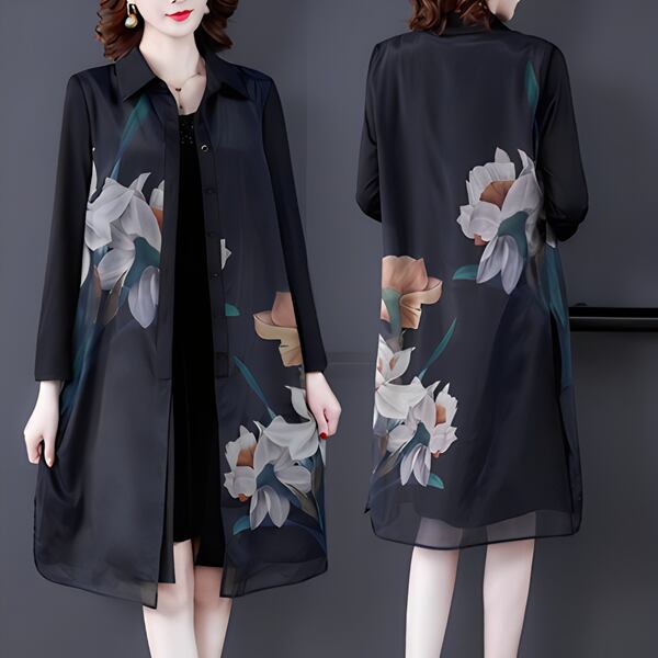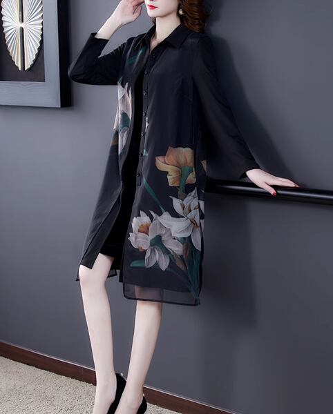 レディース トップス シャツ ブラウス カーディガン ガウン プルオーバー アウター ミディアム丈 長袖 ポロカラー フレア Aライン フォーマル 裾ワイド レトロ フェミニン シフォン 透け感 ボタン 薄手 大人可愛い きれいめ カジュアル 上品 おしゃれ ガーリー ルーズ エレガント メルヘン 涼しげ 花柄 春 秋 ママ 20代 30代 通勤 お出かけ イベント 女子会 休日 ショッピング カフェ トレンド 大きいサイズ ゆったり オーバーサイズ フィット