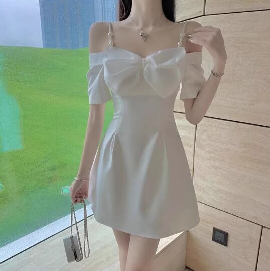 レディース ドレス ワンピース パーティードレス パーティー 結婚式 二次会 披露宴 ミニ ショート 半袖 オフショル フレア Aライン リボン 可愛い 大人可愛い キュート ガーリー 主役級 存在感 華やか フェミニン 女性らしい フェアリー 無地 パーティー 二の腕カバー 美脚 脚長 結婚式 二次会 披露宴 パーティー 2XL S M L XL 白 黒 ホワイト ブラック