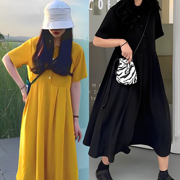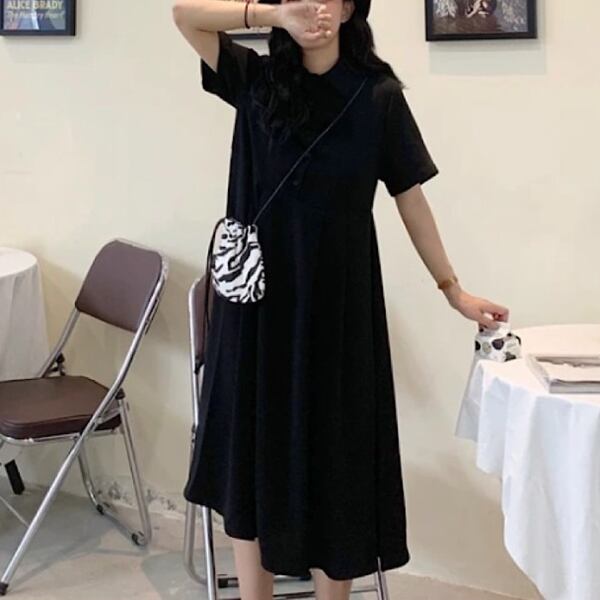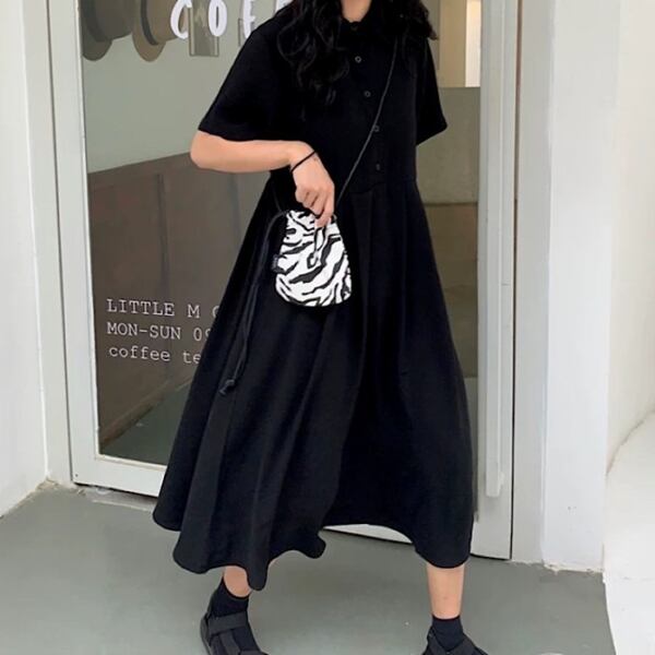 2カラー 夏のフォレストスタイル・リトルドレス レディース ワンピース ドレス フレア フレアスカート ロングスカート 膝下 ミモレ 半袖 ラウンドネック ポロカラー フレア Aライン フォーマル ボタン かわいい 大人可愛い カジュアル おしゃれ こなれ感 ルーズ エレガント 爽やか 涼しげ 無地 夏 10代 20代 30代 オフィス 通勤 イベント ガーデン ショッピング カフェ ゆったり