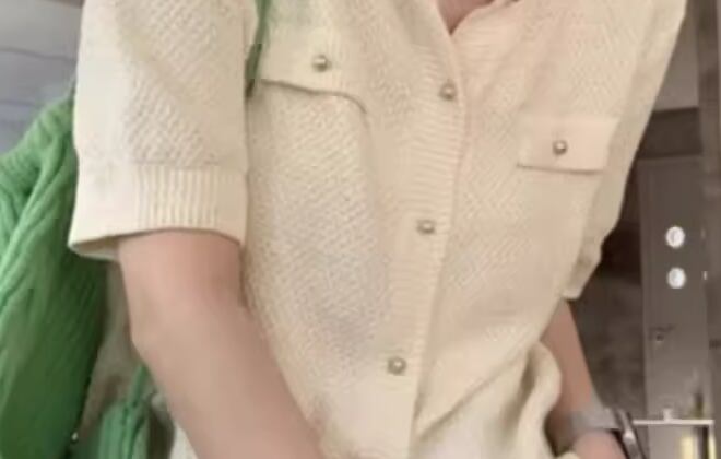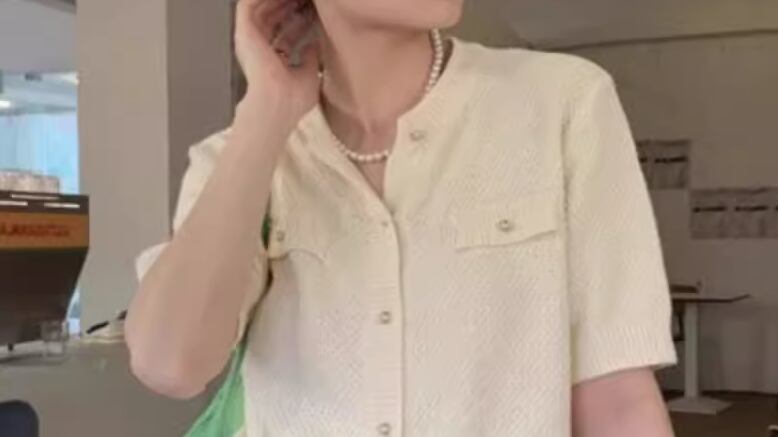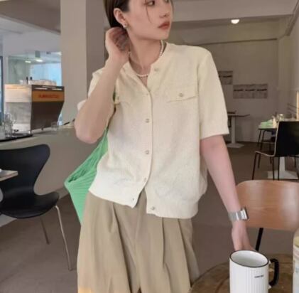 上品で落ち着いた色味とエレガントなデザインが魅力的な半袖のニットカーディガン。