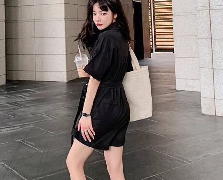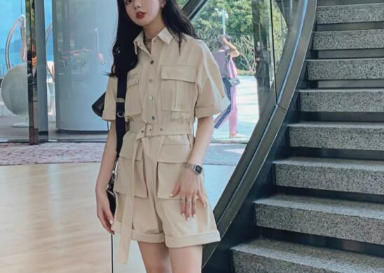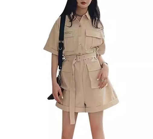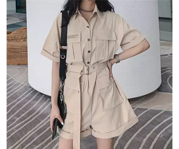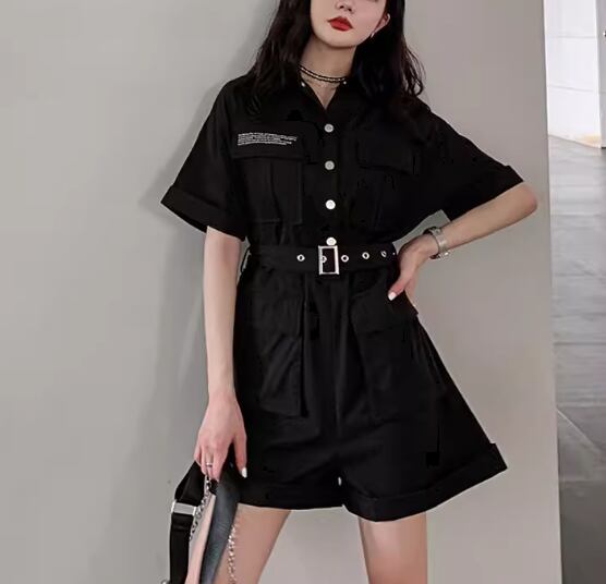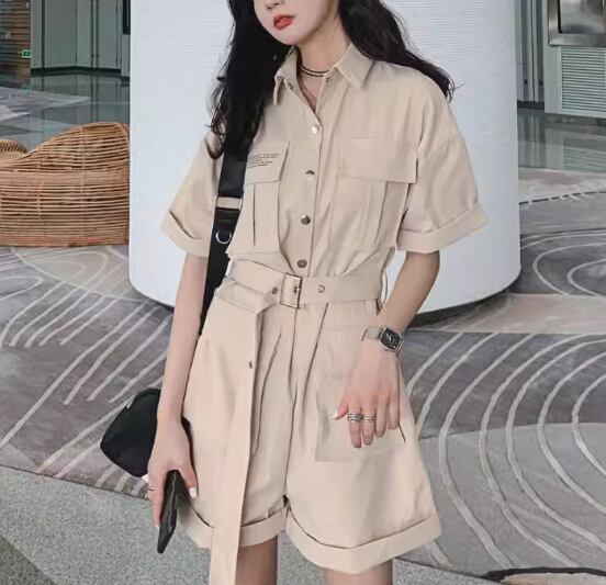 レディース パンツ オールインワン ミニ ショート 半袖 Vネック 襟付き ポロカラー ワイド ベルト ウエストマーク ポケット ハイウエスト ボタン かわいい 大人可愛い シンプル カジュアル おしゃれ かっこいい レトロ ボーイッシュ ルーズ 個性的 クール エレガント ラグジュアリー 無地 夏 10代 20代 学生 デート お出かけ 普段使い トレンド 流行 S M L ゆったり ゆる 大きめ オーバーサイズ ブラック ベージュ