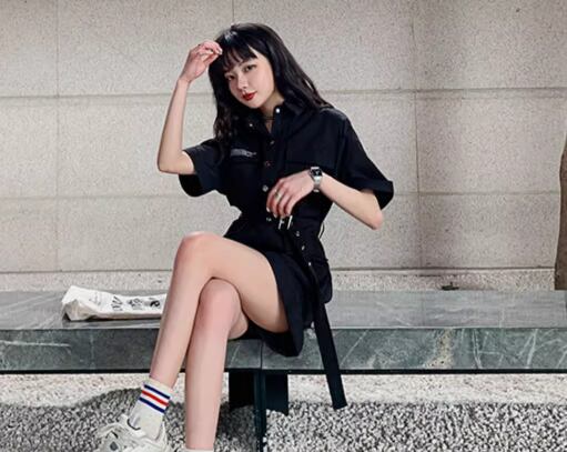 ゆるだぼなオーバーサイズもベルトマークすることですっきり見えして、更に華奢見え!