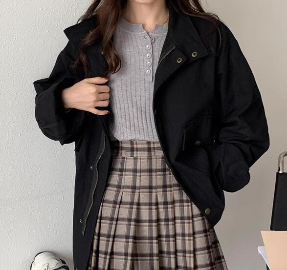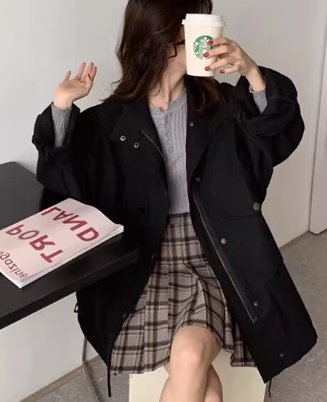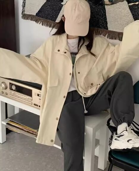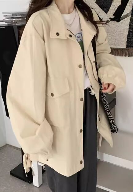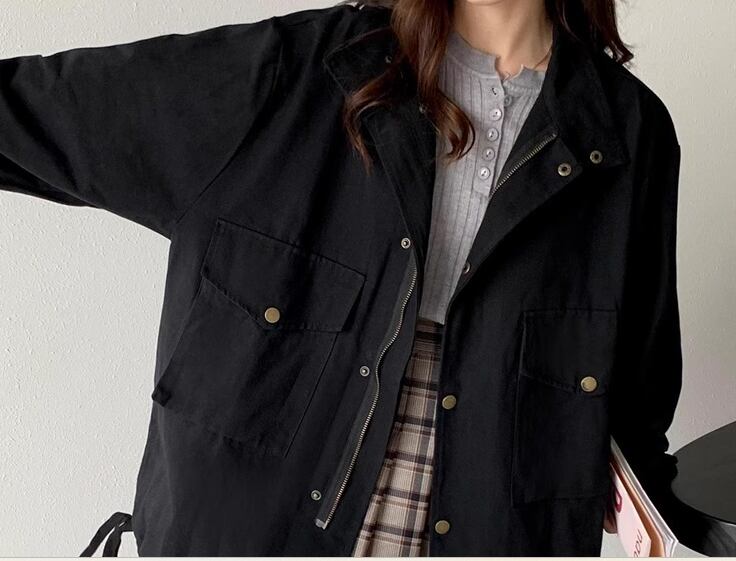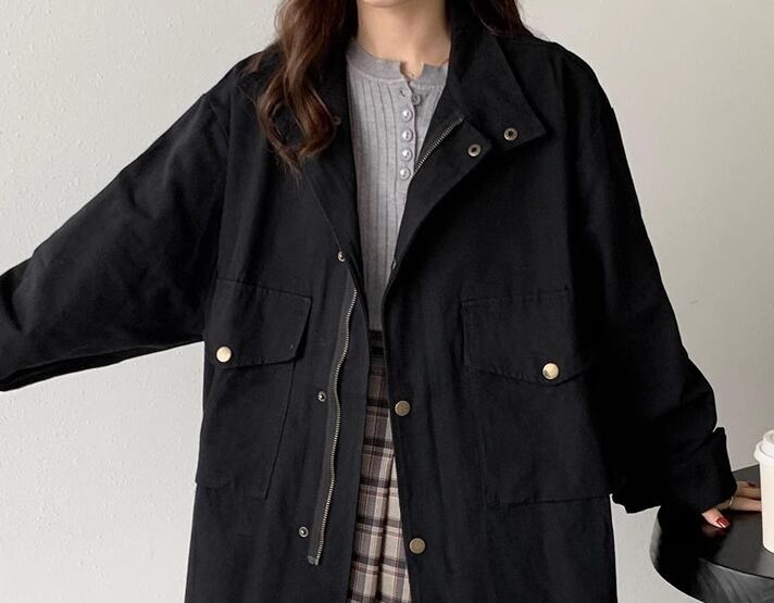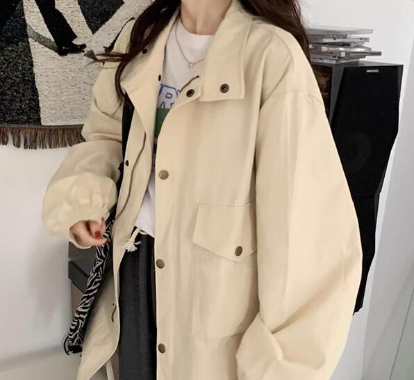 レディース ジャケット アウター 上着 ミドル丈 長袖 ドロップショルダー ポケット ボタン 大人可愛い シンプル カジュアル おしゃれ かっこいい レトロ メンズライク ボーイッシュ ルーズ ナチュラル ハンサム シック 無地 春 秋 10代 20代 学生 デート お出かけ 韓国 普段使い 着回し トレンド 流行 S M L XL 大きいサイズ ゆったり ゆる 大きめ オーバーサイズ ブラック アプリコット