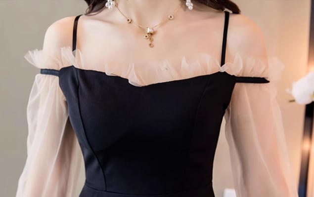 レディース ドレス ナイトドレス キャバドレス キャバ ミニ ショート 7分袖 長袖 オフショル 細身 Aライン フリル ドッキング ハイウエスト 透け感 シースルー プルオーバー 可愛い シンプル 大人可愛い おしゃれ キュート ガーリー 抜け感 セクシー シック 華やか ラグジュアリー パーティー イベント ホテル レストラン デート 秋 S M L スリム 小さめ ホワイト ブラック