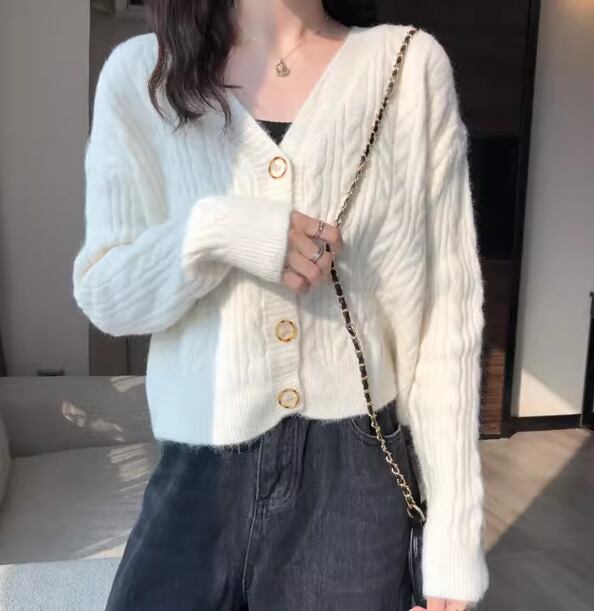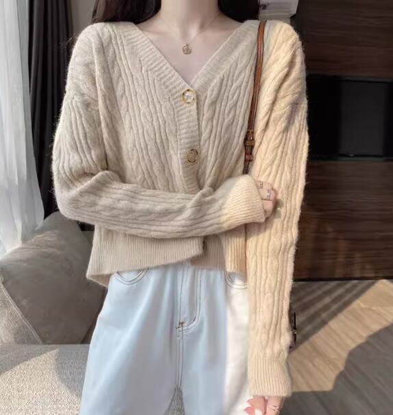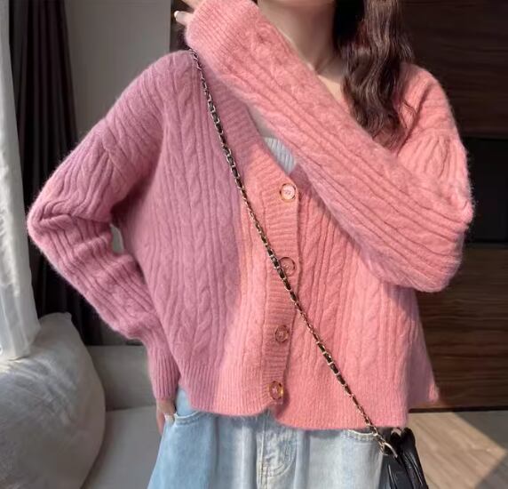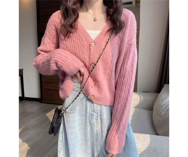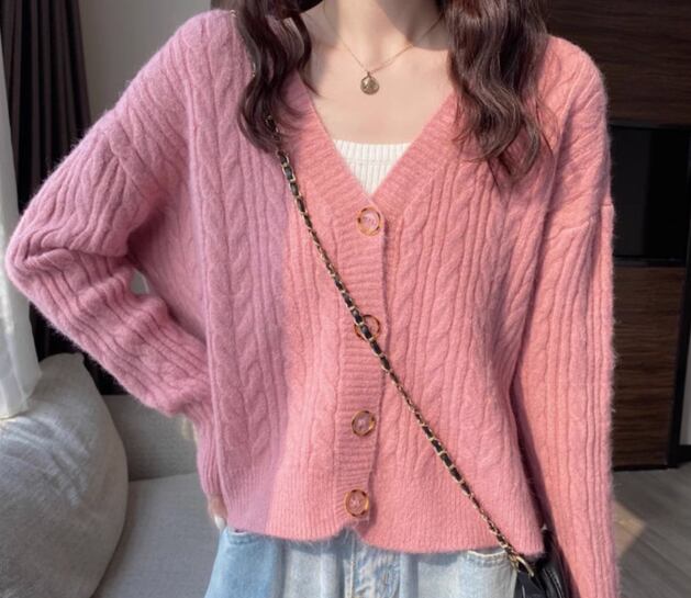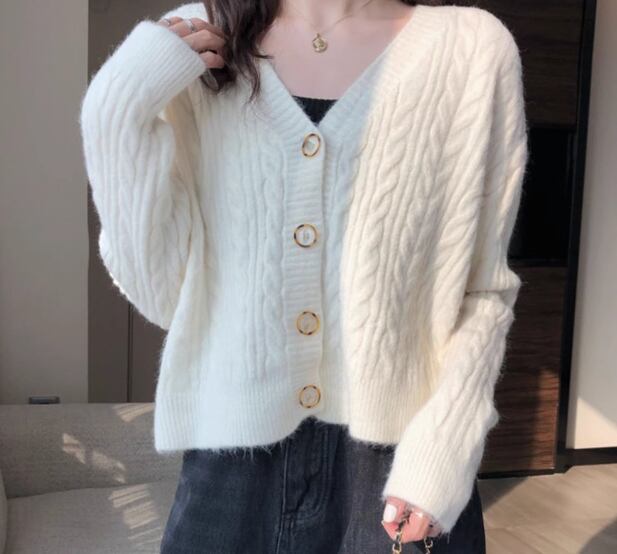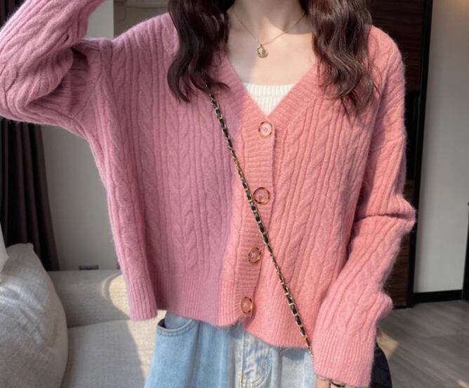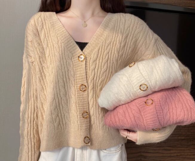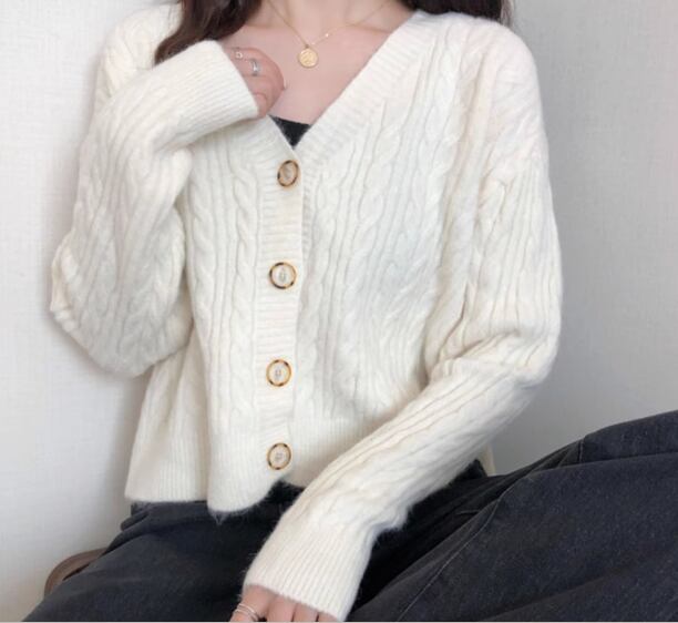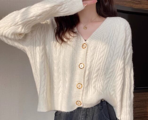 レディース トップス ニット カーディガン ショート クロップド丈 長袖 Vネック フェミニン 前開き ボタン ケーブルニット かわいい 大人可愛い きれいめ シンプル カジュアル 上品 おしゃれ ラフ ガーリー ルーズ 存在感 ラブリー キュート ナチュラル シック 無地 秋 デート お出かけ 重ね着 体型カバー 普段使い 着回し レイヤード ゆったり フリーサイズ ホワイト ピンク アプリコット