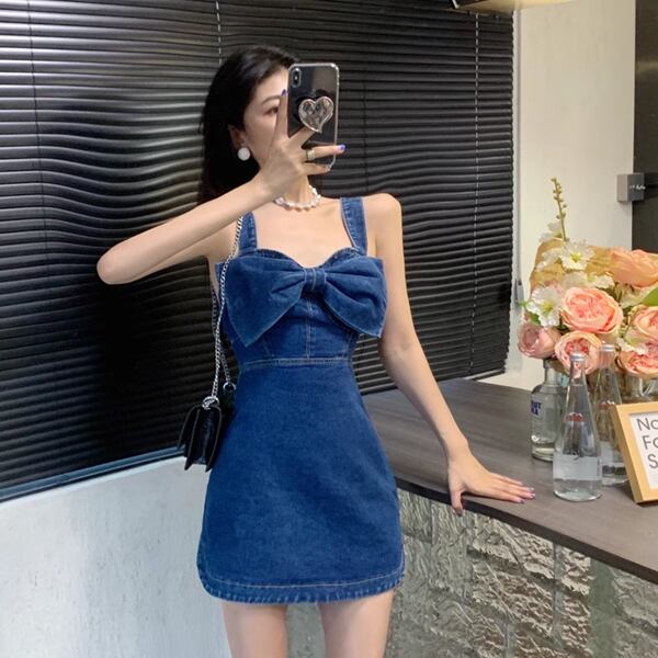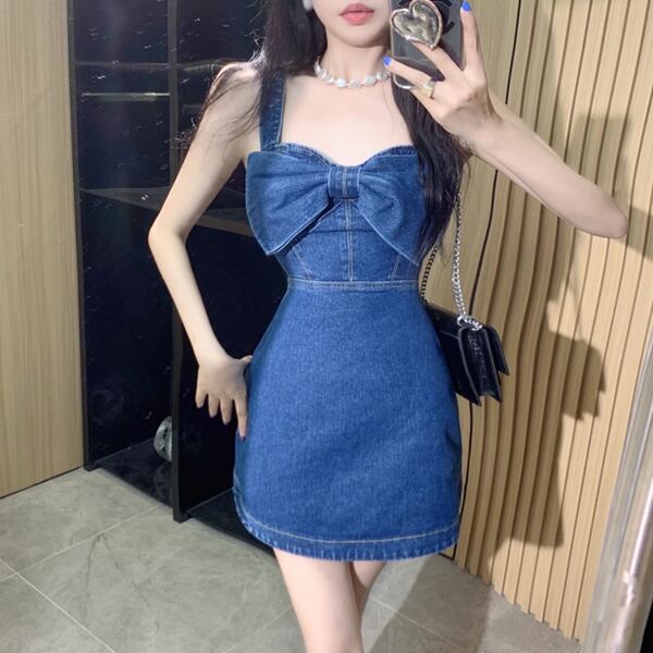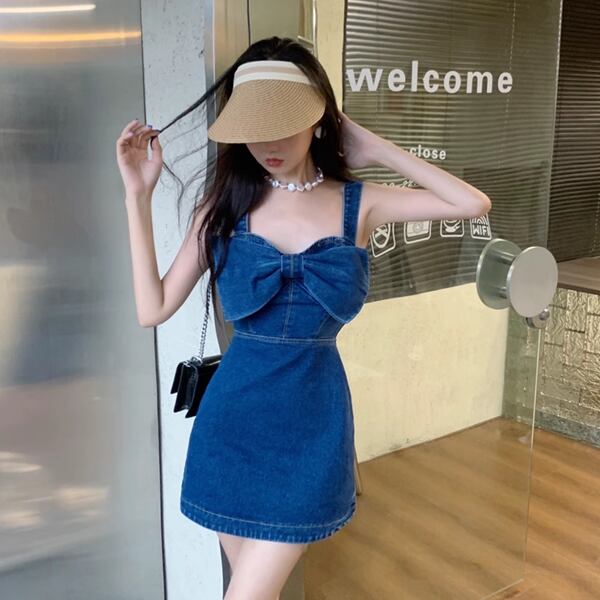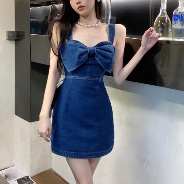 リボンデニムサスペンダードレス レディース ワンピース ドレス ジャンパースカート タイトスカート ミニスカート ミニ ショート 膝上 ノースリーブ オフショルダー りぼんタイ スリム Aライン 背中開き フェミニン ウエストマーク ファスナー ハイウエスト 肌見せ サスペンダー かわいい シンプル おしゃれ ルーズ エレガント ラブリー セクシー 無地 春 夏 秋 10代 20代 通勤 イベント 休日 ガーデン ショッピング ライブ カフェ 重ね着 普段使い レイヤード
