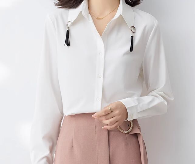 レディース トップス シャツ ミドル丈 長袖 襟付き ポロカラー 前開き 異国風 ボタン フリンジ 大人可愛い きれいめ シンプル カジュアル 上品 おしゃれ かっこいい こなれ感 ボーイッシュ 個性的 クール エレガント ラグジュアリー 知的 清潔感 爽やか ハンサム シック 高級感 無地 春 秋 デート お出かけ 体型カバー 普段使い 着回し S M L XL 大きいサイズ ゆったり ホワイト