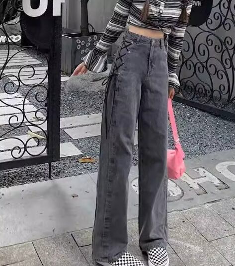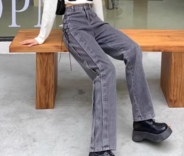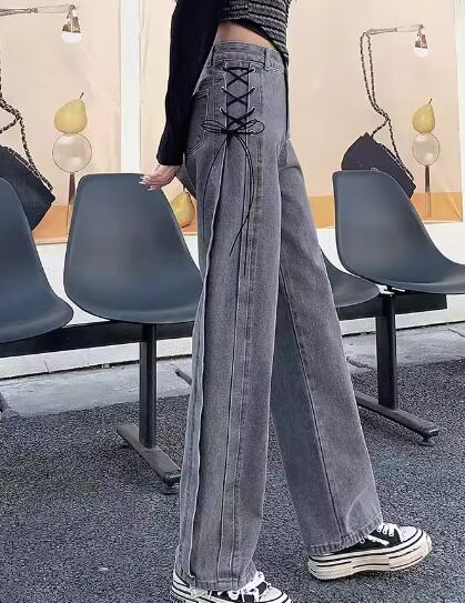 レディース パンツ ボトムス ジーンズ Gパン フルレングス ワイド ストレート フェミニン ストリート ファスナー ポケット ハイウエスト 編み上げ レースアップ ウォッシュ しわ防止加工 デニム カラーデニム かわいい 大人可愛い シンプル カジュアル おしゃれ かっこいい こなれ感 ガーリー クール 無地 春 夏 デート お出かけ 美脚 脚長 普段使い 着回し S M L XL 大きいサイズ グレー
