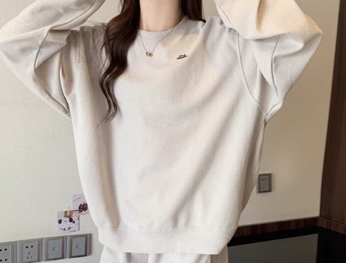 二点セット 上下セット ツーピース レディース プルオーバー スウェット ジャージ 部屋着 セットアップ ショートパンツ 長袖 ドロップショルダー ラウンドネック ウエストゴム 綿 コットン 大人可愛い シンプル カジュアル おしゃれ かっこいい レトロ ラフ ボーイッシュ スポーティー ルーズ クール ワンポイント 春 秋 楽ちん 普段使い 着回し M L XL 大きいサイズ ゆったり ゆる 大きめ オーバーサイズ