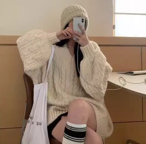 レディース トップス ニット セーター プルオーバー ミドル丈 長袖 Vネック ストレート フェミニン 厚手 ケーブルニット かわいい 大人可愛い シンプル カジュアル おしゃれ ラフ ボーイッシュ ガーリー ルーズ 存在感 キュート ラグジュアリー ナチュラル 秋 冬 デート お出かけ 暖かい 体型カバー 普段使い 着回し ゆったり ゆる フリーサイズ 大きめ ホワイト グレー ピンク ブルー パステル グリーン