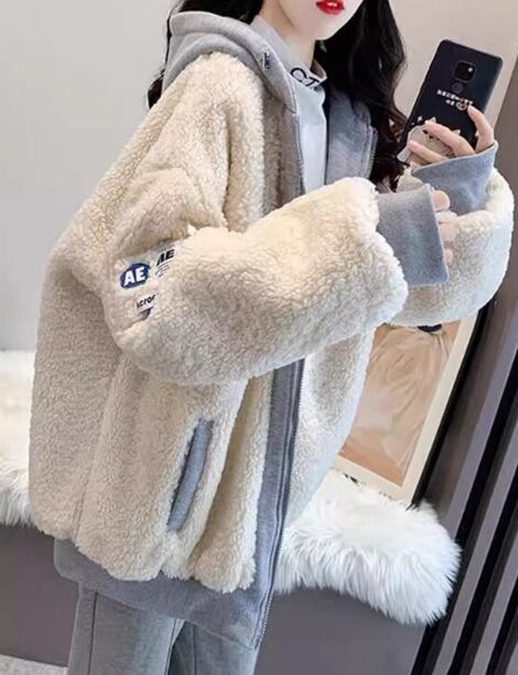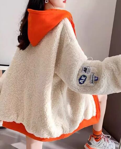 重ね着風 フェイクツーピース レディース ジャケット アウター 上着 ミドル丈 長袖 ストリート ヒップホップ もこもこ ふわふわ ファスナー ポケット フード フリース ベルベット かわいい カジュアル おしゃれ かっこいい ボーイッシュ ルーズ 個性的 秋 冬 10代 20代 学生 デート お出かけ 重ね着 暖かい 防寒 普段使い 着回し レイヤード トレンド 流行 M L XL 大きいサイズ ゆったり ゆる 大きめ オーバーサイズ グレー オレンジ