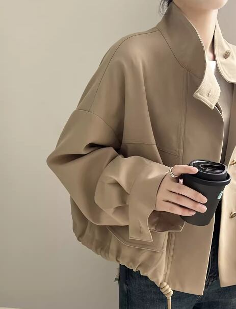 レディース ジャケット アウター 上着 ショート 長袖 ドロップショルダー 襟なし ノーカラー スタンドカラー ボタン かわいい 大人可愛い きれいめ シンプル カジュアル 上品 おしゃれ かっこいい ボーイッシュ ルーズ クール エレガント ラグジュアリー ナチュラル 無地 春 秋 デート お出かけ 韓国 普段使い 着回し S M L ゆったり ブラック オフホワイト カーキ