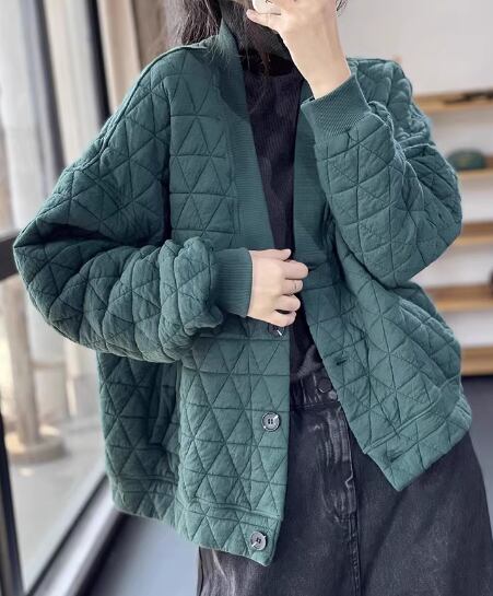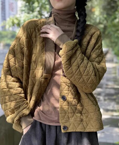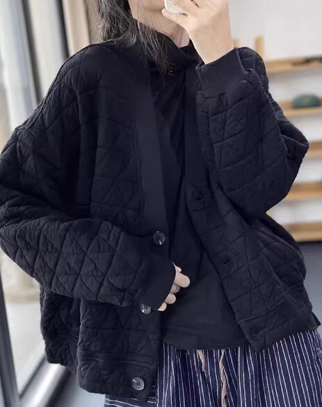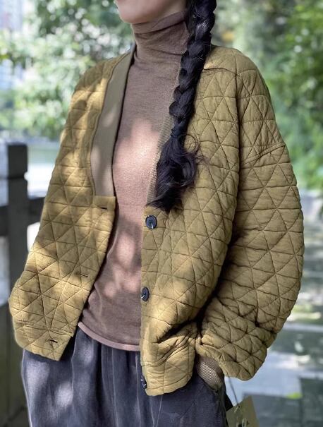 レディース ジャケット アウター 上着 キルティングジャケット ミドル丈 長袖 ドロップショルダー Vネック 襟なし ノーカラー ボタン 大人可愛い シンプル カジュアル 上品 おしゃれ レトロ ボーイッシュ ルーズ クール エレガント ナチュラル 無地 秋 デート お出かけ 普段使い 着回し トレンド 流行 M L XL 大きいサイズ ゆったり ゆる 大きめ オーバーサイズ ブラック イエロー ブルー