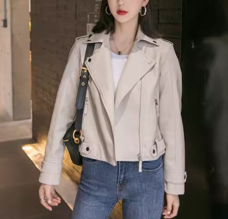 レディース ジャケット アウター 上着 レザージャケット ショート 長袖 襟付き スーツカラー スマート ファスナー レザー PU 大人可愛い きれいめ シンプル カジュアル 上品 おしゃれ かっこいい ボーイッシュ クール エレガント ラグジュアリー ワイルド セクシー ハンサム 無地 春 秋 デート お出かけ 韓国 普段使い 着回し S M L XL 大きいサイズ ブラック オフホワイト ピンク