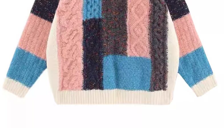 落ち着いた色味のカラフルな色使いがおしゃれな長袖のニットセーター。