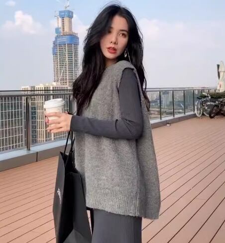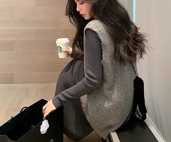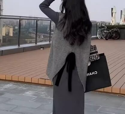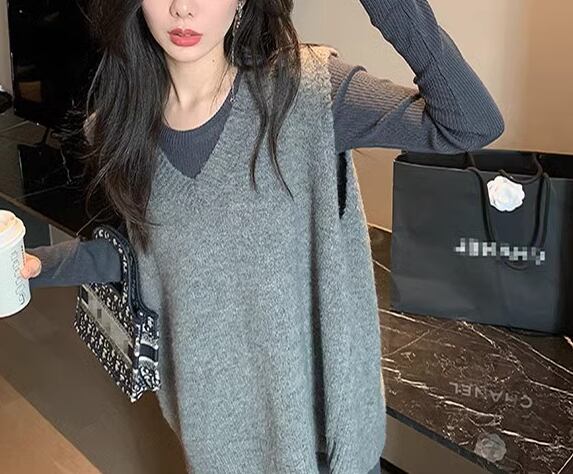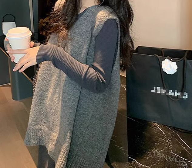 レディース トップス ニット セーター プルオーバー ベスト ミドル丈 袖なし ノースリーブ Vネック フェミニン バックリボン かわいい 大人可愛い きれいめ シンプル カジュアル 上品 おしゃれ ガーリー ルーズ エレガント キュート ラグジュアリー ナチュラル シック 高級感 無地 秋 冬 デート お出かけ 重ね着 体型カバー 普段使い 着回し レイヤード S M L ゆったり ゆる 大きめ グレー