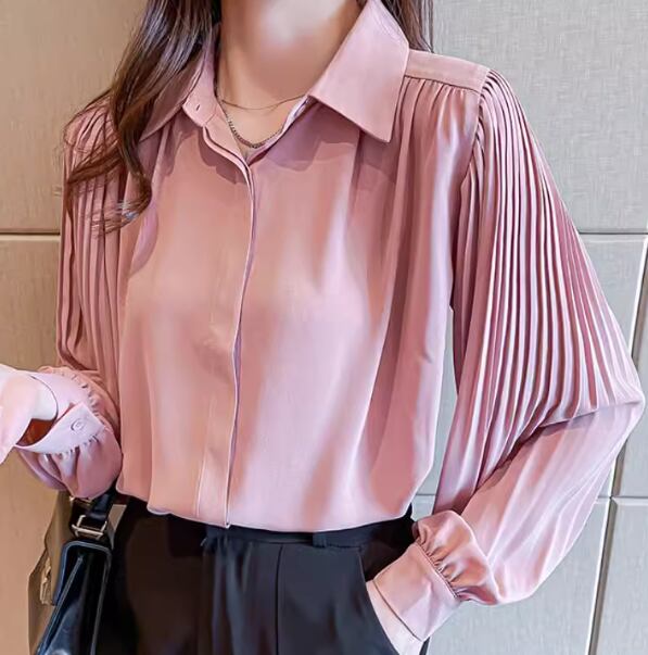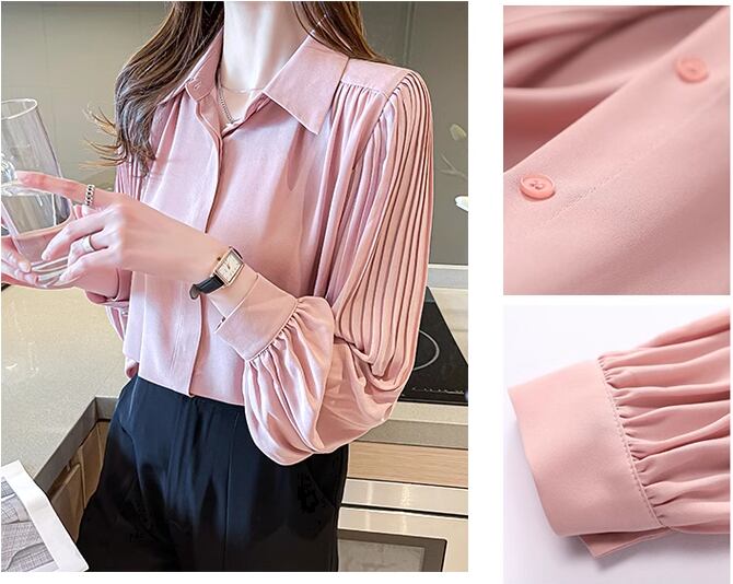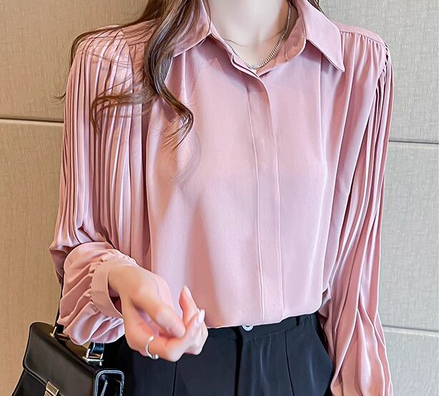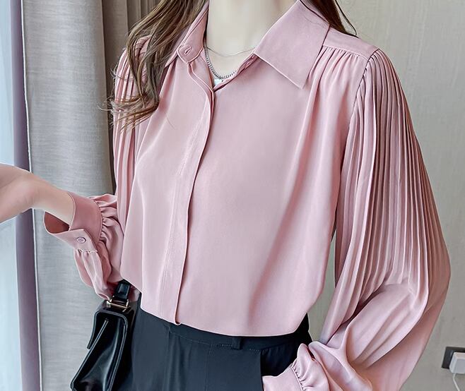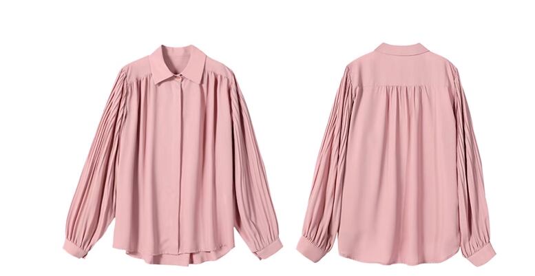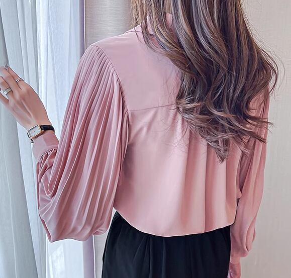 レディース トップス シャツ ミドル丈 長袖 ボリューム袖 バルーン袖 ランタンスリーブ 襟付き ポロカラー ストレート フェミニン プリーツ シフォン 前開き ボタン かわいい 大人可愛い きれいめ シンプル カジュアル 上品 おしゃれ ガーリー ルーズ 個性的 エレガント 存在感 キュート 無地 秋 オフィス OL 通勤 デート お出かけ 普段使い 着回し 清楚 S M L XL 大きいサイズ ピンク