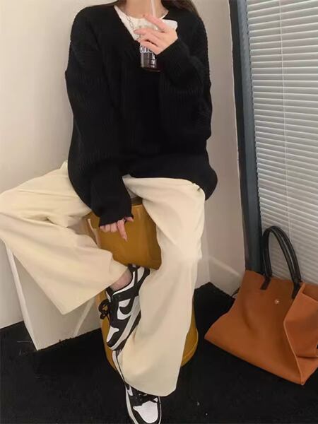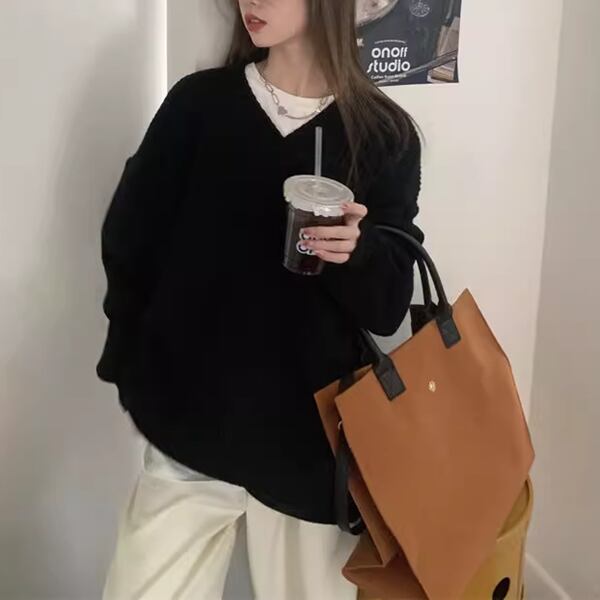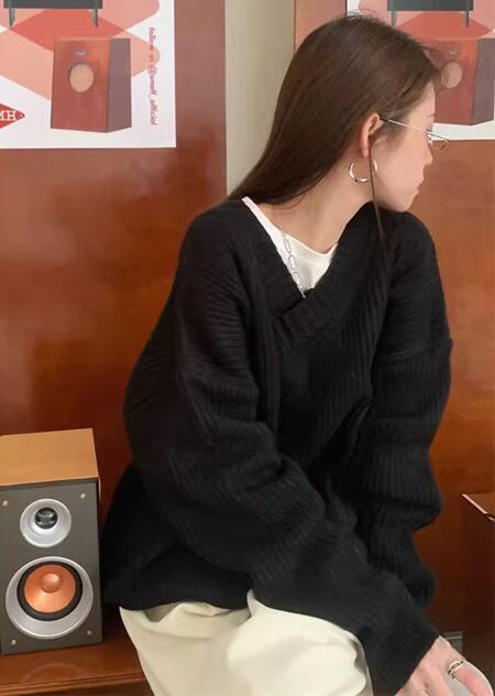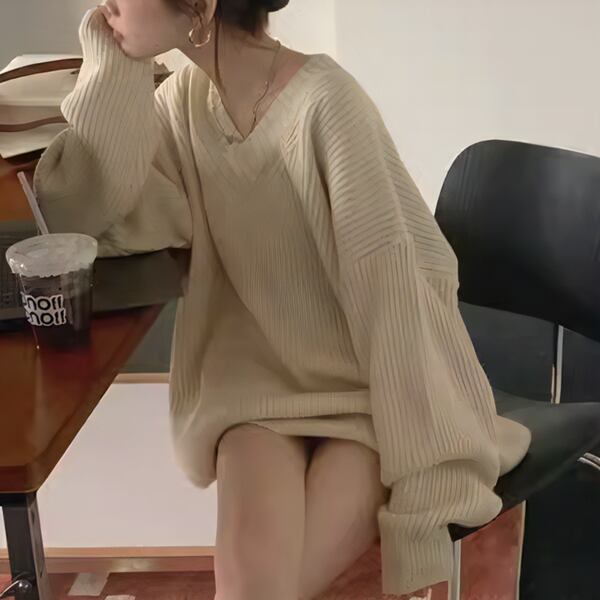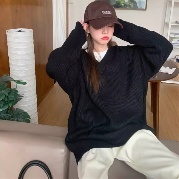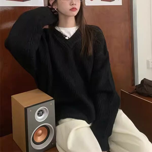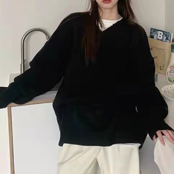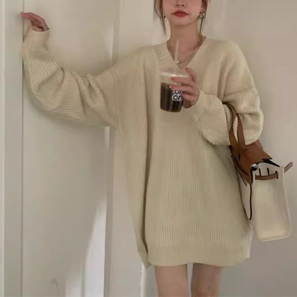 2色展開 デザインニッチ/Vネック長袖セーター レディース トップス ニット セーター アウター ロング 長袖 Vネック ストレート ヘッジ オーバーサイズ フェミニン ふっくら リブニット シースルー ステッチ 伸縮性 大人可愛い カジュアル 上品 おしゃれ ルーズ エレガント オフィスカジュアル 痩身 無地 秋 冬 10代 20代 オフィス 通勤 イベント ガーデン ショッピング カフェ 体型カバー 普段使い