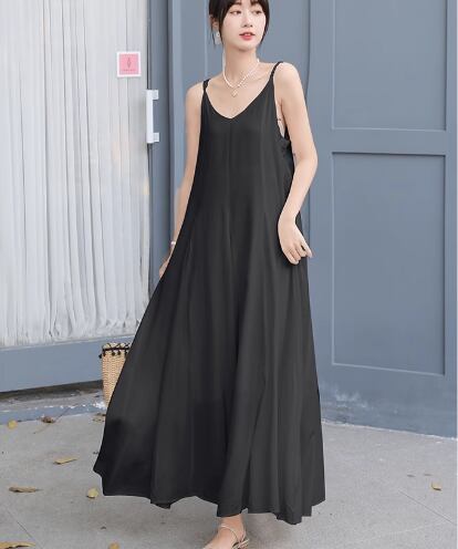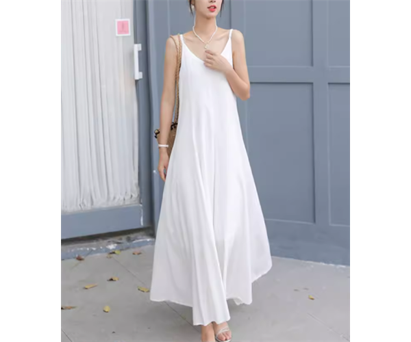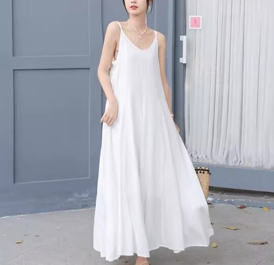 柔らかなシフォン生地と夏にぴったりの涼しげでシンプルなデザインが魅力的なマキシ丈のキャミワンピース。