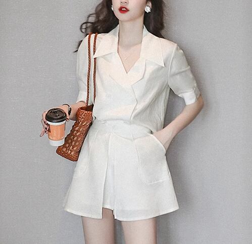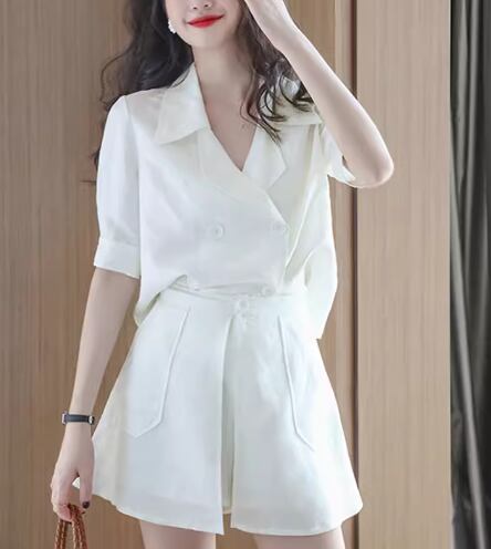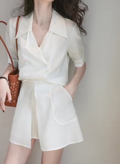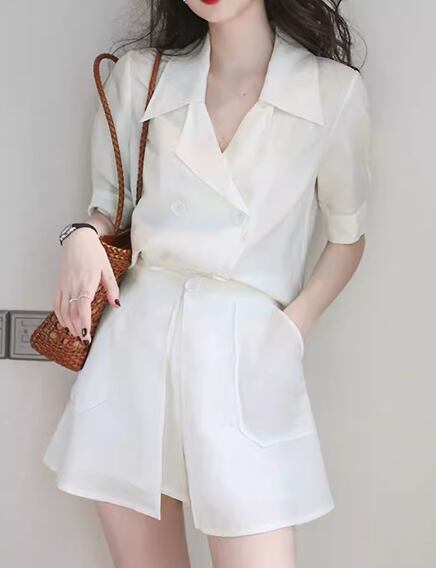 二点セット 上下セット ツーピース レディース パンツ シャツ セットアップ ショートパンツ 半袖 襟付き スーツカラー ポケット 前開き ボタン かわいい 大人可愛い きれいめ シンプル カジュアル おしゃれ かっこいい こなれ感 ラフ ボーイッシュ クール エレガント ラグジュアリー 清潔感 爽やか セクシー ハンサム シック 無地 夏 デート お出かけ 普段使い 着回し S M L ホワイト
