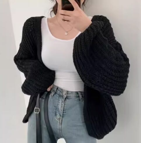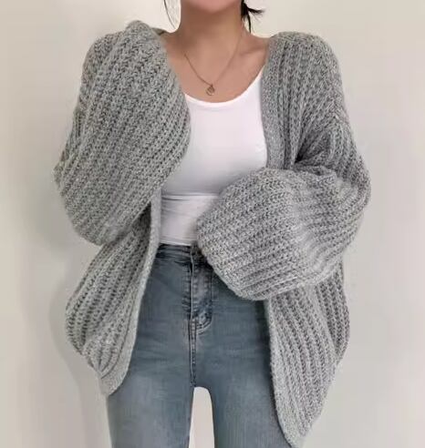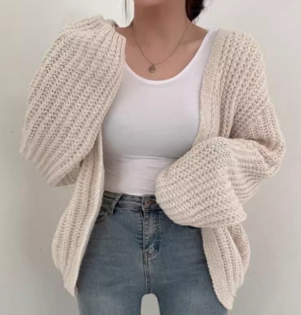 レディース トップス ニット カーディガン 上着 羽織 前開き ミドル丈 長袖 ボリューム袖 バルーン袖 ランタンスリーブ Vネック ストレート かわいい 大人可愛い シンプル カジュアル おしゃれ かっこいい こなれ感 ラフ ボーイッシュ ルーズ クール 存在感 キュート ラグジュアリー 無地 春 秋 デート お出かけ 韓国 普段使い 着回し モテ トレンド 流行 ゆったり ゆる フリーサイズ 大きめ オーバーサイズ ホワイト ブラック グレー カーキ
