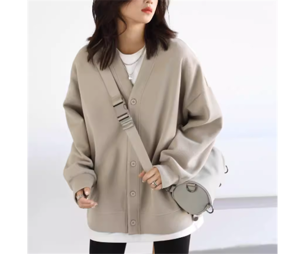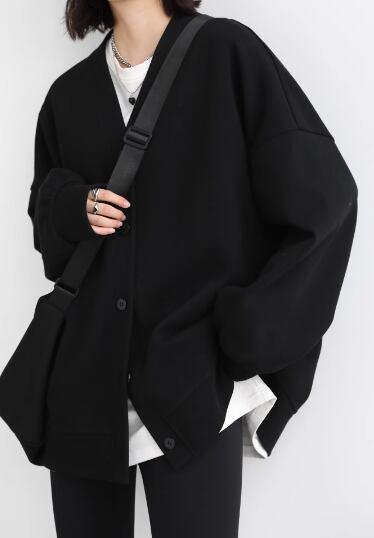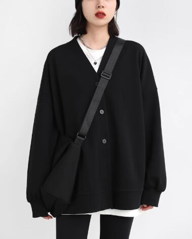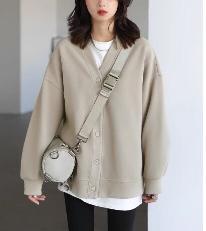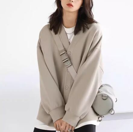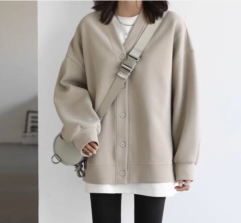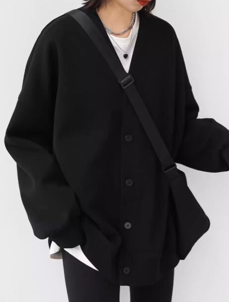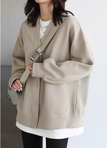 上品で落ち着いた色味とゆるだぼなオーバーサイズが魅力的なVネックの長袖カーディガン。