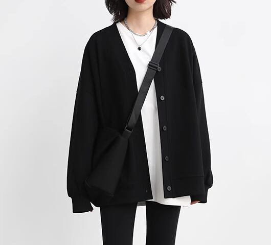 レディース トップス カーディガン 羽織 前開き ミドル丈 長袖 ドロップショルダー Vネック 前開き ボタン かわいい 大人可愛い シンプル カジュアル かっこいい レトロ こなれ感 ラフ メンズライク ボーイッシュ ルーズ クール エレガント ラグジュアリー ナチュラル 無地 秋 デート お出かけ 重ね着 韓国 体型カバー 普段使い 着回し レイヤード トレンド 流行 定番 M L XL 大きいサイズ ゆったり ゆる 大きめ オーバーサイズ ブラック アプリコット