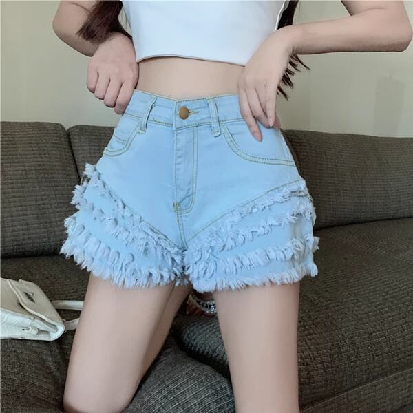 ブラッシュエッジ/タッセルフリルの超ショートホットパンツ レディース パンツ ボトムス デニム ジーンズ Gパン ショートパンツ デニムパンツ ミニ ショート セミフレア タイト スリム 細身 Aライン フェミニン フリル ハイウエスト ウォッシュ デニム かわいい 大人可愛い おしゃれ かっこいい ラフ ルーズ セレブリティ 無地 シーズンレス 10代 20代 通勤 お出かけ アウトドア パーティー ガーデン ショッピング ライブ カフェ スタイルアップ フィット