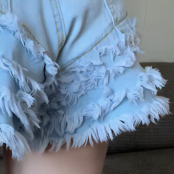 ブラッシュエッジとタッセルフリルが特徴のデザインニッチなデニムショートパンツ。スリムフィットでヒップをハグし、マイクロミニ&フレアワイドレッグがトレンディ。ハイウエストでウエストを引き締め、Aラインのシルエットが女性らしさを演出。デイリーからパーティーまで、様々なシーンで活躍するホットパンツです。
