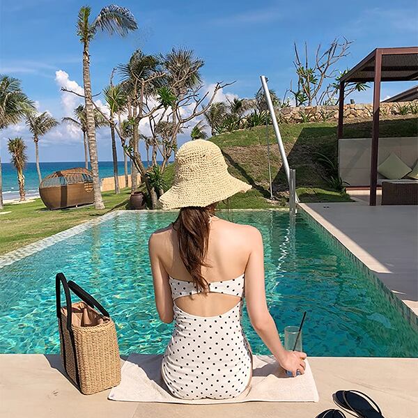 着痩せ効果とお腹カバーに優れたデザインのビーチウェア。ビキニ風のワンピース水着です。背中が開いているので、背中の美しいラインを演出しつつ、スタイルを引き締めます。自信を持ってビーチやプールサイドで輝けますヨ。リラックス感を満喫!快適な夏・太陽・水しぶきを楽しんでください。