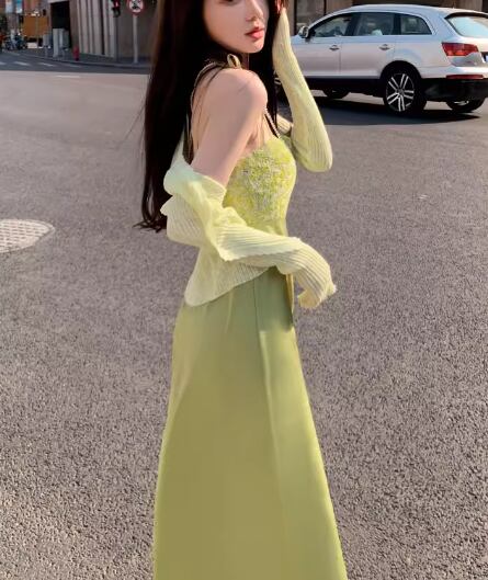 そのまま着ても可愛いですが、透け感のあるシャツやカーディガンを羽織っても◎