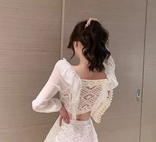 レディース トップス シャツ カットソー プルオーバー ショート クロップド丈 長袖 パフスリーブ スクエアネック フェミニン レース 刺繍 切り替えデザイン ドッキング かぎ針編み 透かし編み サテン かわいい 大人可愛い きれいめ カジュアル おしゃれ かっこいい レトロ こなれ感 ガーリー 個性的 エレガント 抜け感 ラグジュアリー 春 10代 20代 学生 デート お出かけ 普段使い 着回し トレンド 流行 フリーサイズ ホワイト
