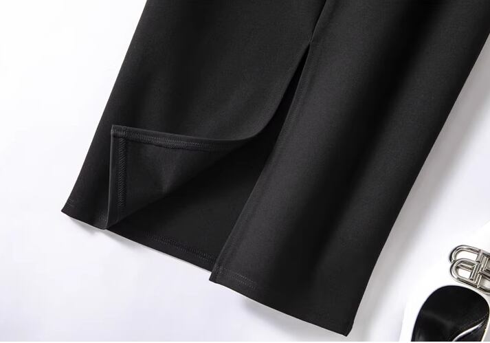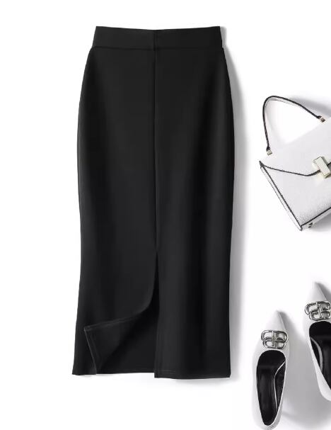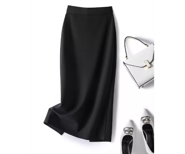 クールで知的なブラック×タイトなシルエットが大人可愛いミモレ丈のスカート。
