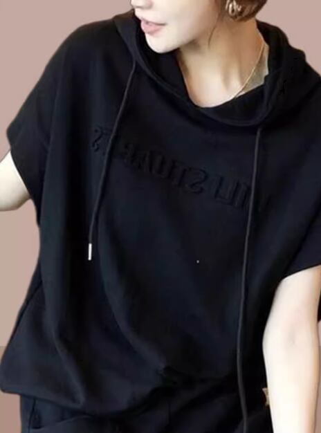 二点セット 上下セット ツーピース レディース プルオーバー セットアップ スポーツウェア フルレングス 半袖 ストリート ポケット ウエストゴム フード かわいい 大人可愛い シンプル カジュアル おしゃれ かっこいい レトロ ラフ メンズライク ボーイッシュ スポーティー ルーズ クール 文字 テキスト 英語 夏 デート お出かけ 楽ちん 普段使い 着回し トレンド 流行 L XL 大きいサイズ ゆったり ゆる 大きめ オーバーサイズ ブラック グレー