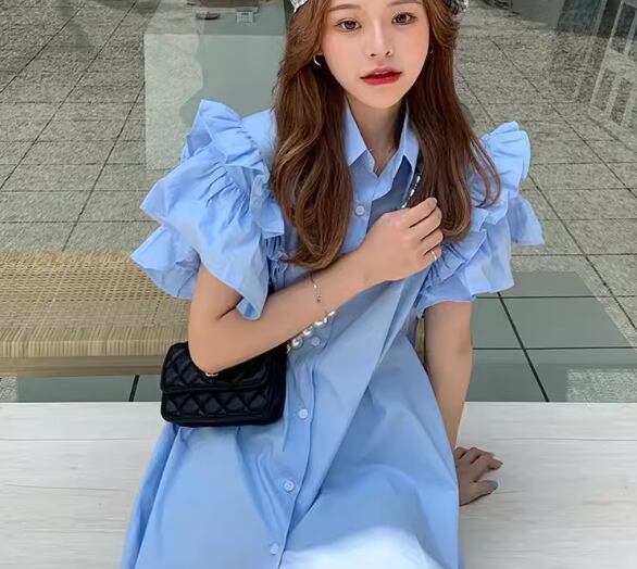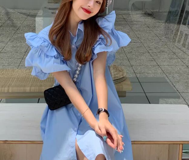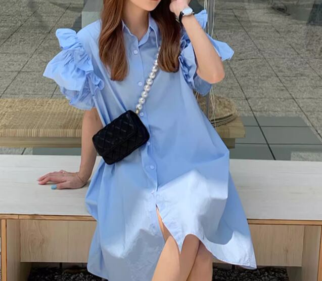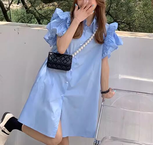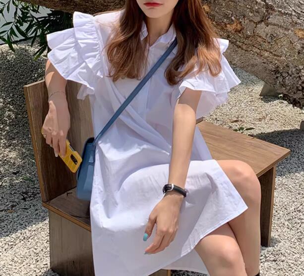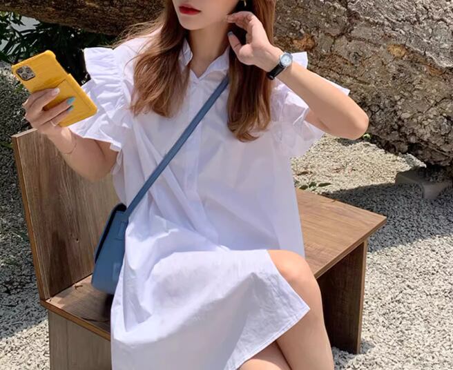 レディース ワンピース シャツワンピ ミニ ショート 膝丈 半袖 パフスリーブ 襟付き ポロカラー Aライン フェミニン フリル 前開き ボタン かわいい きれいめ シンプル カジュアル おしゃれ ガーリー ルーズ 個性的 存在感 ラブリー キュート ラグジュアリー 清潔感 爽やか 無地 夏 10代 20代 学生 デート お出かけ 体型カバー 普段使い 清楚 S M L XL 大きいサイズ ゆったり ゆる 大きめ ホワイト ブルー