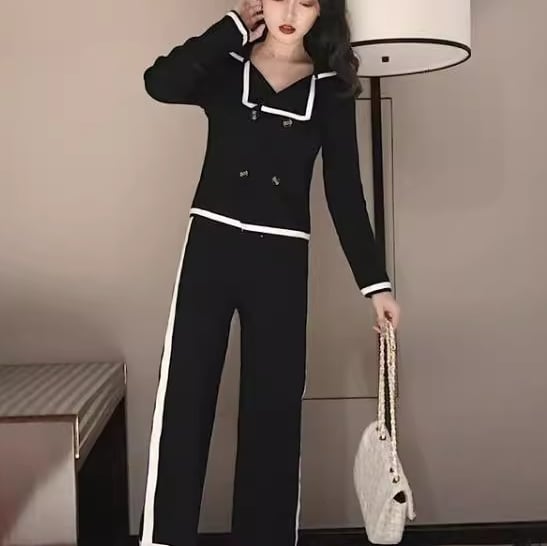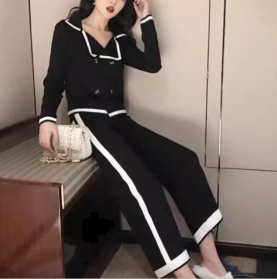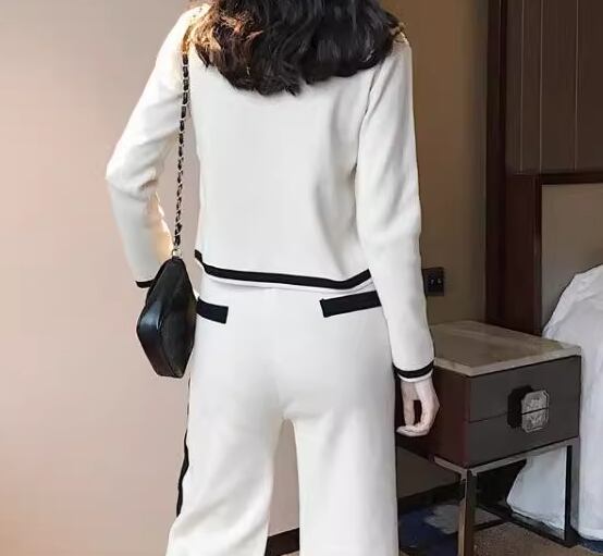 シックなカラーの二色使いが大人可愛いニット素材のセットアップ。
