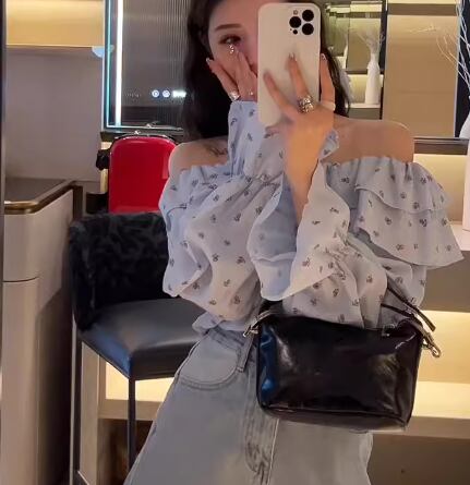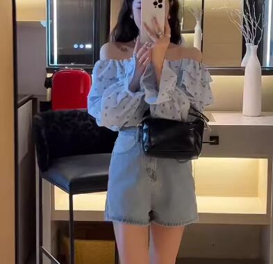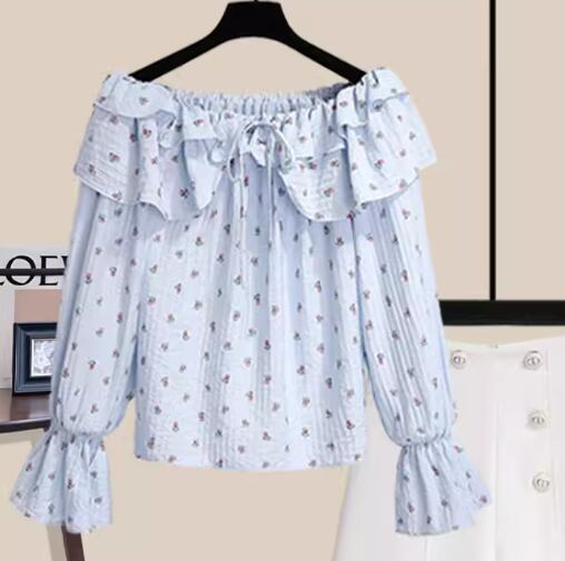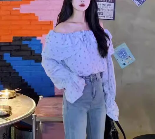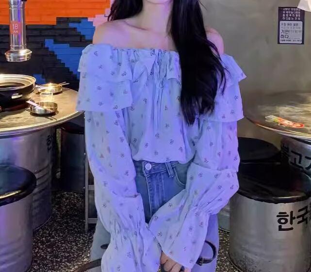 レディース トップス シャツ カットソー プルオーバー ショート クロップド丈 長袖 オフショルダー スリム 細身 フェミニン フリル かわいい 大人可愛い きれいめ カジュアル おしゃれ かっこいい こなれ感 ラフ ガーリー 抜け感 キュート ラグジュアリー 花柄 フラワー プリント 小花柄 秋 10代 20代 学生 デート お出かけ 普段使い 着回し S M L XL 大きいサイズ 小さめ ブルー
