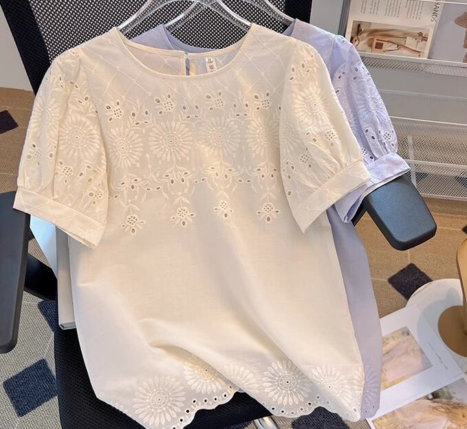レディース トップス カットソー プルオーバー Tシャツ ミドル丈 半袖 ラウンドネック ストレート フェミニン 刺繍 かわいい 大人可愛い きれいめ シンプル カジュアル 上品 おしゃれ レトロ ラフ ガーリー エレガント キュート ナチュラル 清潔感 爽やか シック 高級感 優しい 穏やか フェアリー 夏 デート お出かけ 普段使い 着回し S M L XL 大きいサイズ アプリコット パープル