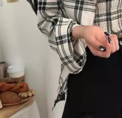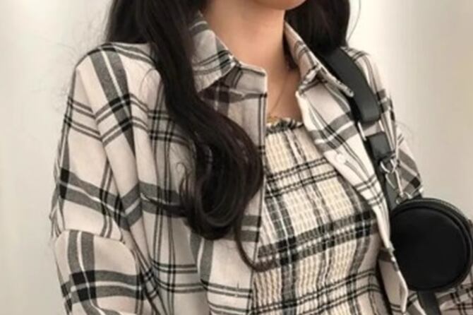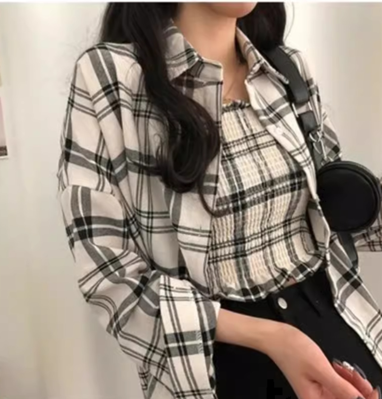 ホワイト×ブラックのシックなカラーのチェック柄が大人っぽい長袖シャツ。