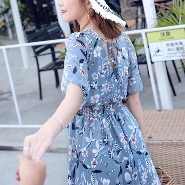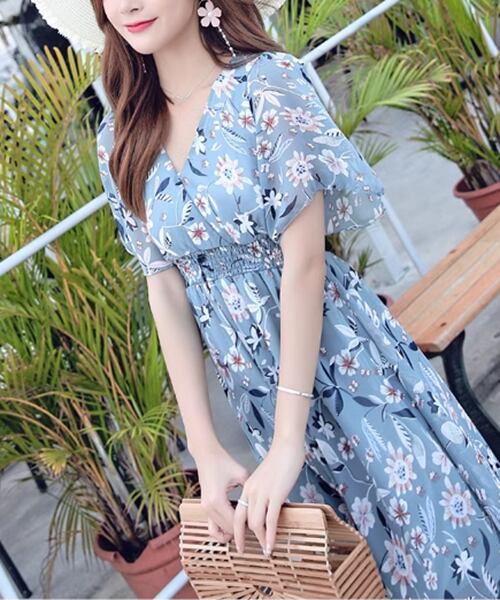 花柄ドレス レディース ワンピース ドレス フレア フレアスカート ロングスカート 膝下 ロング 半袖 Vネック ノーカラー フレア スリム Aライン フォーマル フェミニン ウエストマーク ハイウエスト シフォン レトロ 大人可愛い カジュアル 上品 おしゃれ ガーリー エレガント モダン 爽やか 花柄 ボタニカル 春 夏 秋 10代 20代 通勤 お出かけ パーティー リゾート 公園 バカンス ビーチ ガーデン ショッピング コンサート