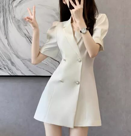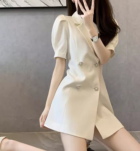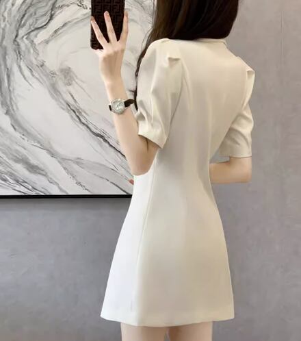 レディース ワンピース ミニ ショート 半袖 襟付き スーツカラー Aライン ウエストマーク ハイウエスト ボタン かわいい 大人可愛い きれいめ シンプル 上品 おしゃれ かっこいい こなれ感 個性的 クール エレガント ラグジュアリー セクシー ハンサム シック 高級感 スタイリッシュ 無地 夏 デート お出かけ 普段使い 着瘦せ スタイルアップ S M L XL 大きいサイズ ホワイト