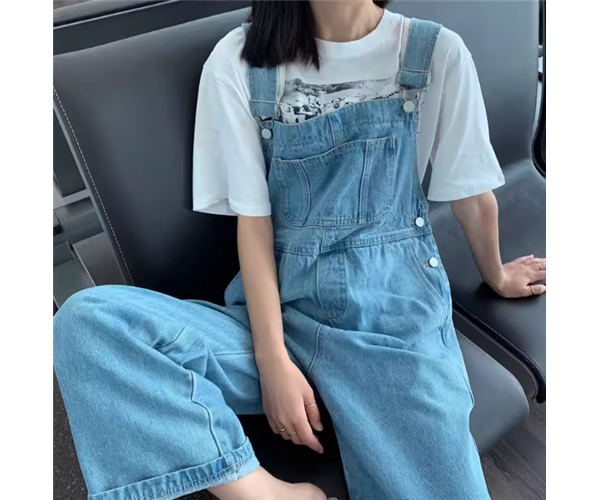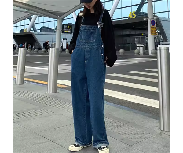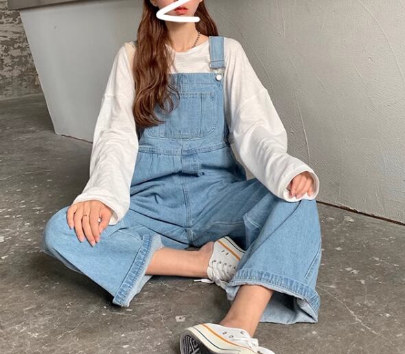 ゆったりとしたシルエットが魅力的なフルレングスのオーバーオール。