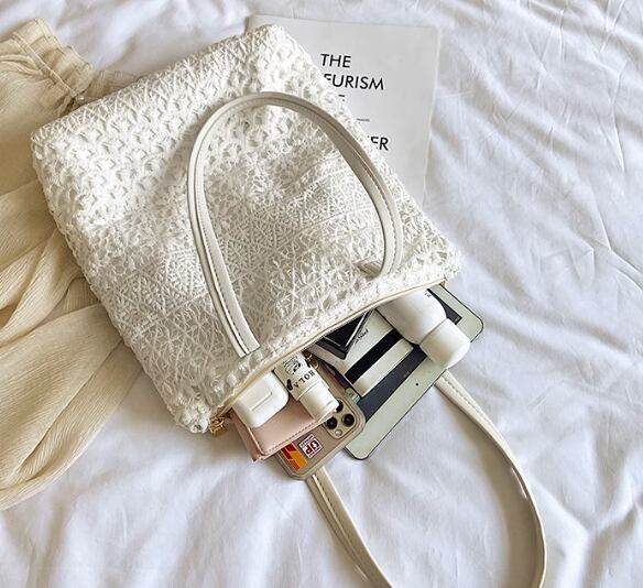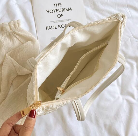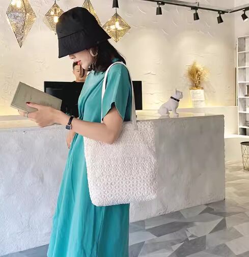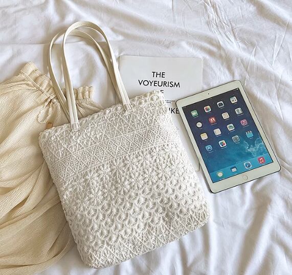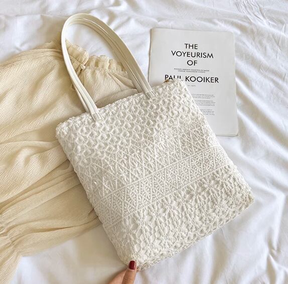 バッグ カバン レディース ショルダー トート 肩がけ 大容量 スクエア 四角 レース ポケット ファスナー 柔らかい ソフト かわいい 大人可愛い きれいめ シンプル カジュアル 上品 お洒落 ラフ キュート ガーリー エレガント 華やか フェミニン シック 高級感 優しい 穏やか デート お出かけ 普段使い 韓国 高見え 春 夏 大きめ 大きい ラージサイズ ホワイト
