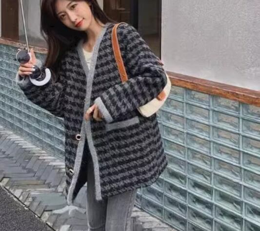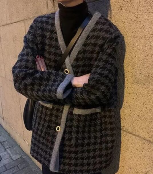 レディース コート アウター 上着 ウール ノーカラーコート ミドル丈 長袖 Vネック 襟なし ノーカラー ポケット ボタン かわいい 大人可愛い きれいめ カジュアル 上品 おしゃれ かっこいい レトロ こなれ感 ボーイッシュ クール エレガント ラグジュアリー 豪華 知的 ハンサム シック 高級感 スタイリッシュ チェック 秋 冬 デート お出かけ 普段使い 着回し M L XL 大きいサイズ グレー