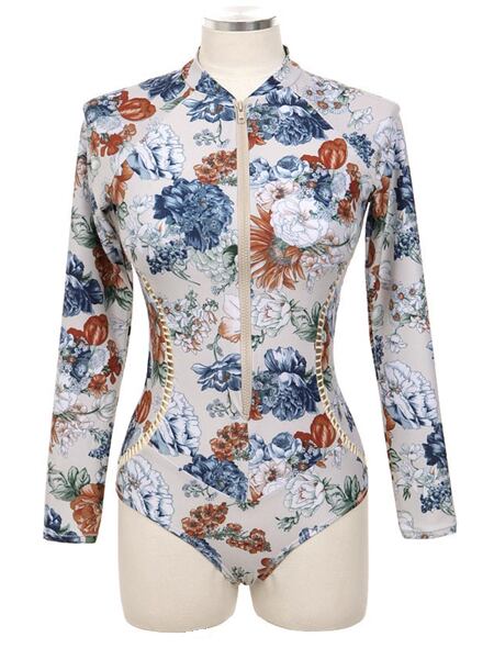 水着 スイムウェア サーフィンスーツ レディース カジュアルサーフィン水着 三角ワンピース水着 ワンピース ノンワイヤー パッド付き 長袖 七分袖 ナイロン かわいい 大人可愛い きれいめ カジュアル 華やか 大人っぽい おしゃれ お洒落 ガーリー スタイリッシュ かっこいい 涼しげ 爽やか スポーティ 花柄 リゾート 温泉 プール 夏 海 アウトドア ビーチ バカンス