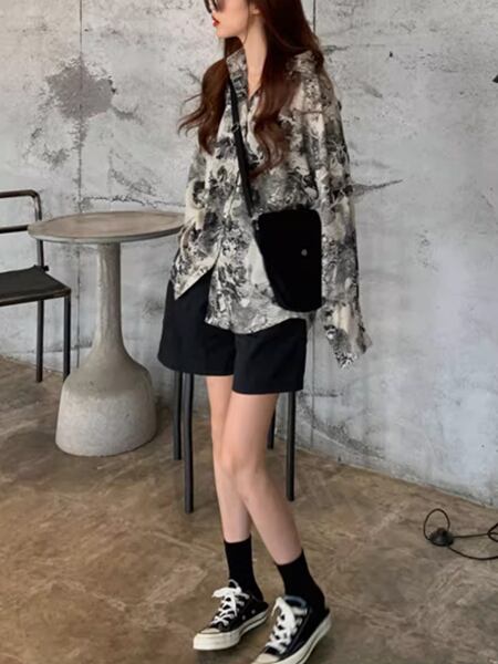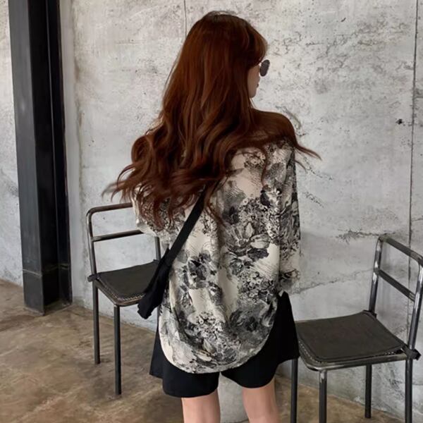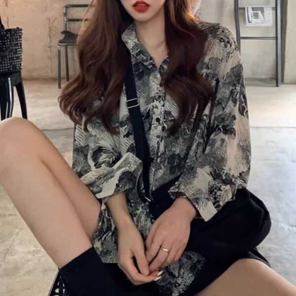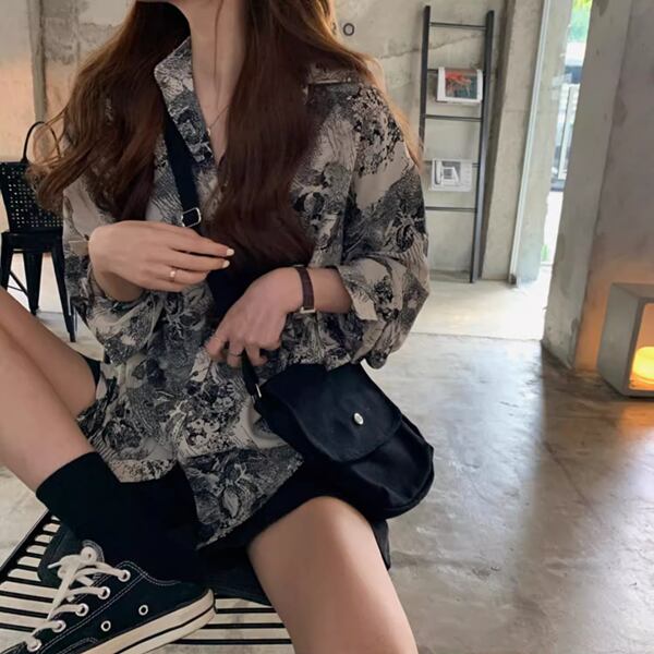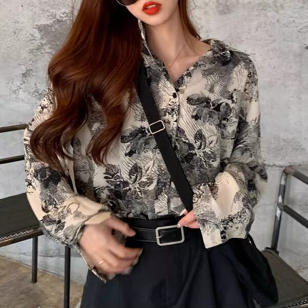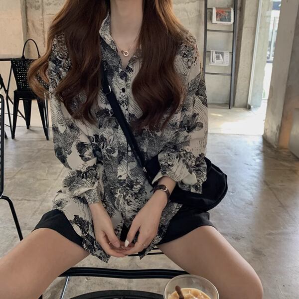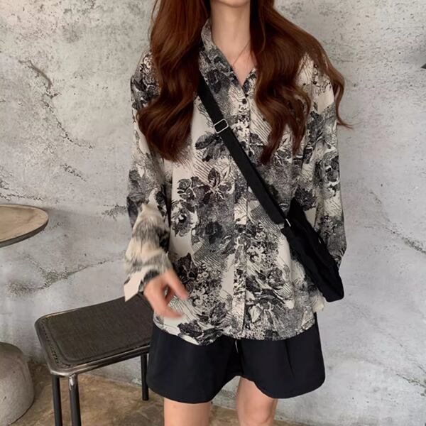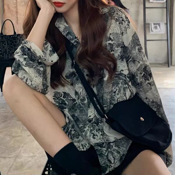 香港と韓国のスタイルを融合させたレトロな花柄プリントシャツ。女性らしいデザインで、春夏秋に活躍するトップス。華やかな花柄プリントが特徴の個性的なアイテムです。ルーズなシルエットでアウターウェアとしても着用可能。シフォン素材の軽やかで薄手な仕上がりは、涼しげです。